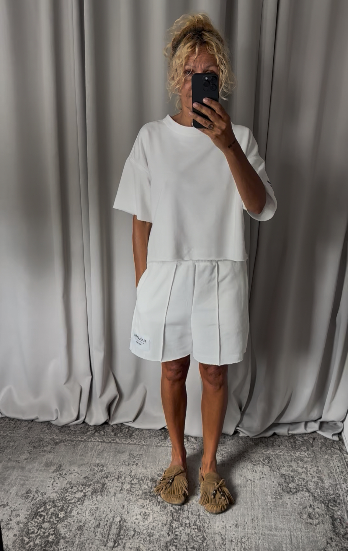Biała bawełniana bokserka damska to ponadczasowy basic, który sprawdzi się w każdej szafie. Uszyta z miękkiej bawełny, zapewnia wygodę noszenia przez cały dzień. Ma dopasowany krój i klasyczny, zaokrąglony dekolt, który podkreśla sylwetkę. Uniwersalny fason i gładki materiał sprawiają, że pasuje do wszystkiego – zarówno do dresów, jak i jeansów czy spódnicy. Idealna jako baza pod marynarkę lub noszona solo w letnie dni. To minimalistyczny element garderoby, który daje nieskończenie wiele możliwości stylizacji.