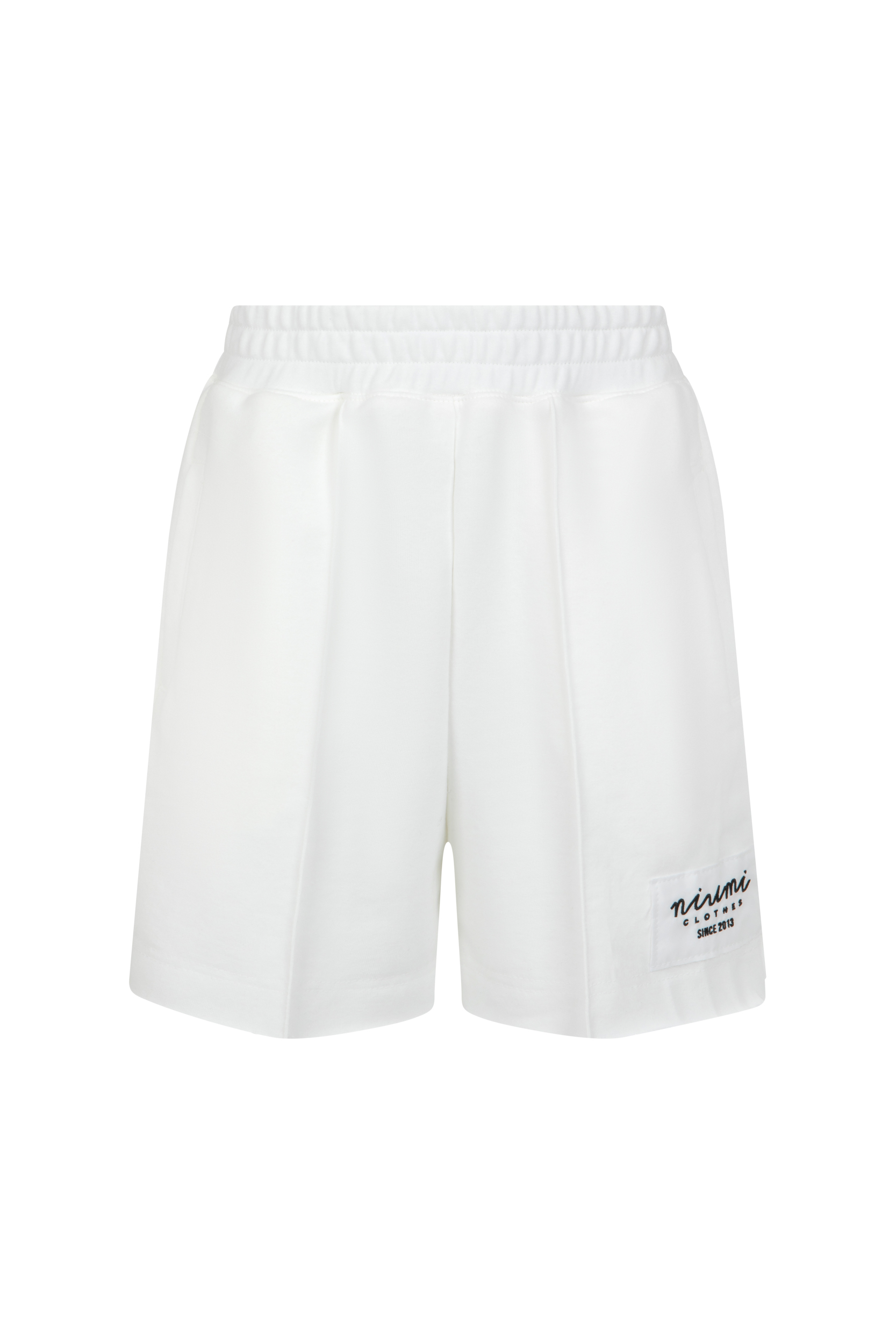 Białe dresowe szorty damskie to stylowa propozycja na ciepłe dni. Wykonane z miękkiej bawełny, są lekkie, przewiewne i przyjemne w noszeniu. Krótki fason, elastyczna talia na gumce oraz boczne kieszenie zapewniają wygodę i swobodę ruchów. Na nogawce znajduje się biała naszywka z logo Niumi. Idealnie komponują się z bluzą Silvan White, tworząc spójny zestaw na lato, spacer czy wyjazd.