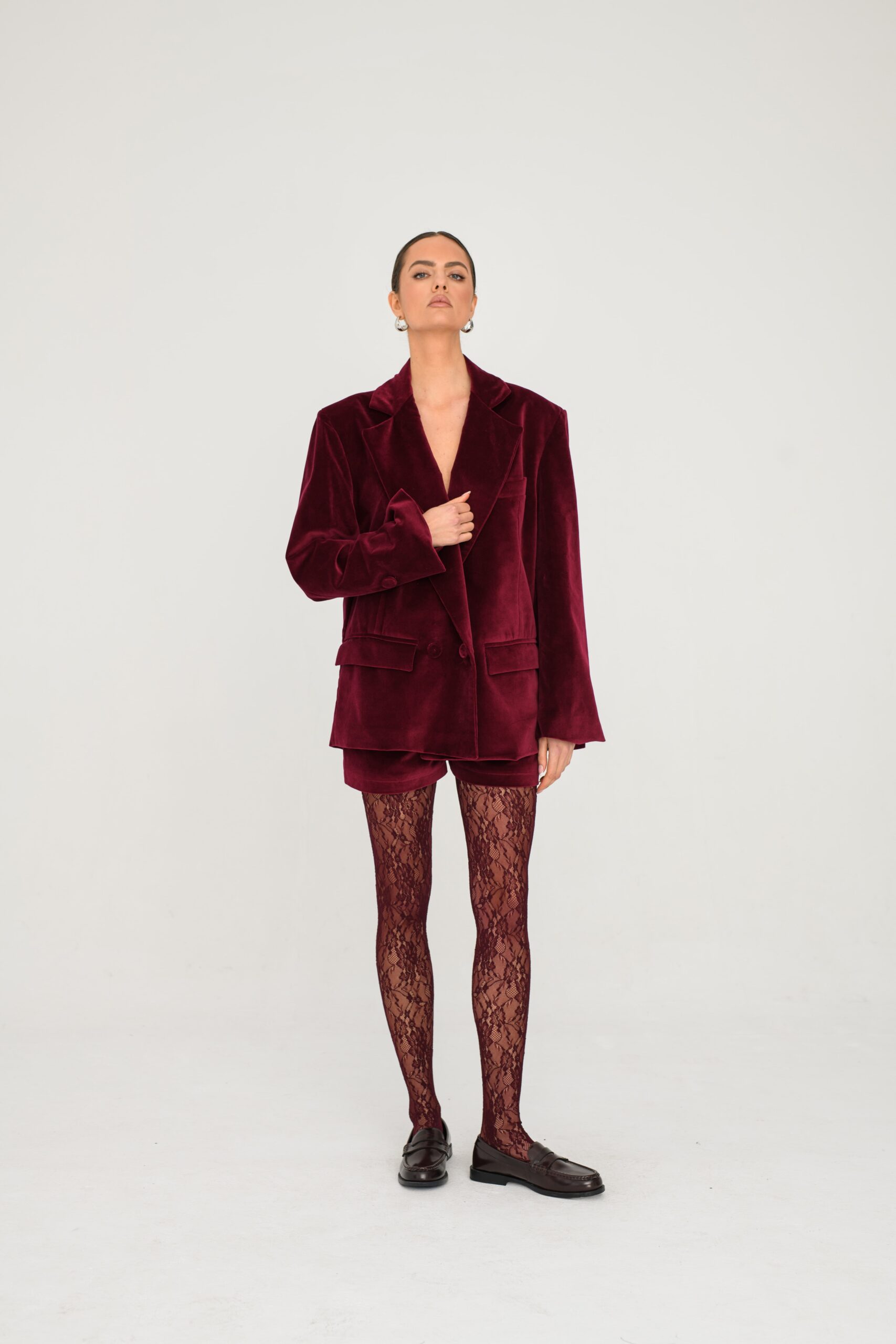 Bordowe szorty damskie to świetne uzupełnienie codziennych stylizacji. Uszyte z bawełnianego aksamitu są miękkie, przyjemne w dotyku i wygodne w noszeniu. Ich lekka faktura sprawia, że dobrze sprawdzają się także w chłodniejsze dni. W połączeniu z marynarką Claret tworzą zgrany komplet, a zestawione z koszulą lub bluzką dają wiele możliwości stworzenia prostych i eleganckich stylizacji. Z tyłu zapinane są na zamek, co ułatwia dopasowanie.