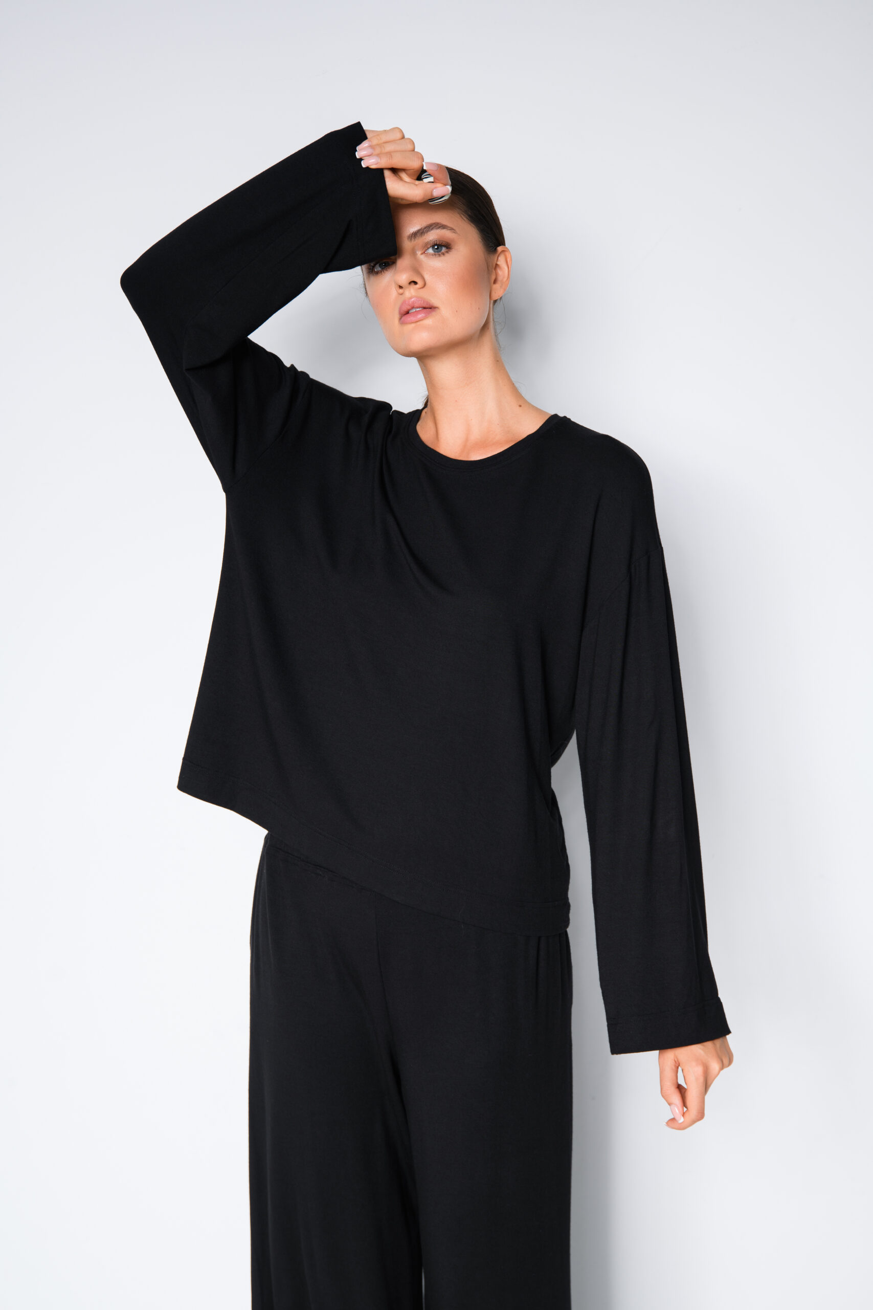 Czarna bluzka z modalu o luźnym kroju