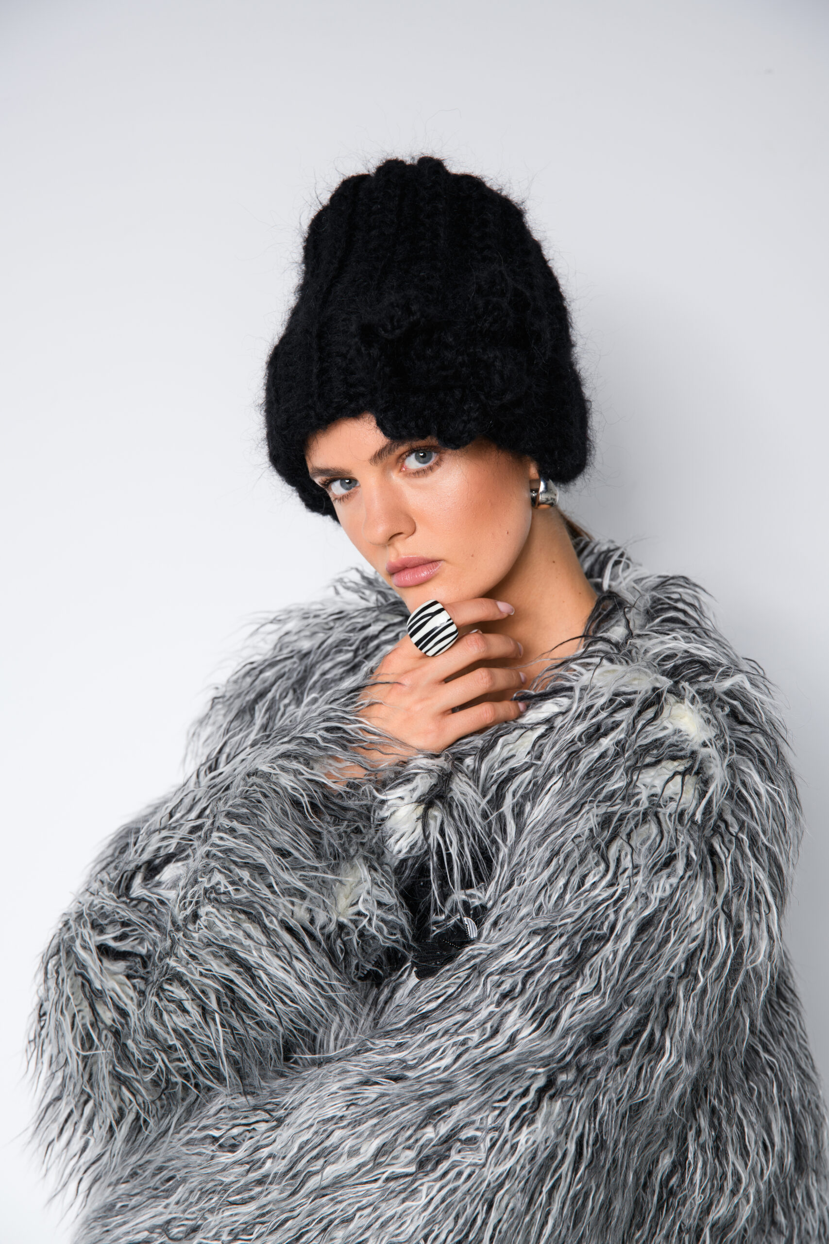 Czarna czapka damska handmade