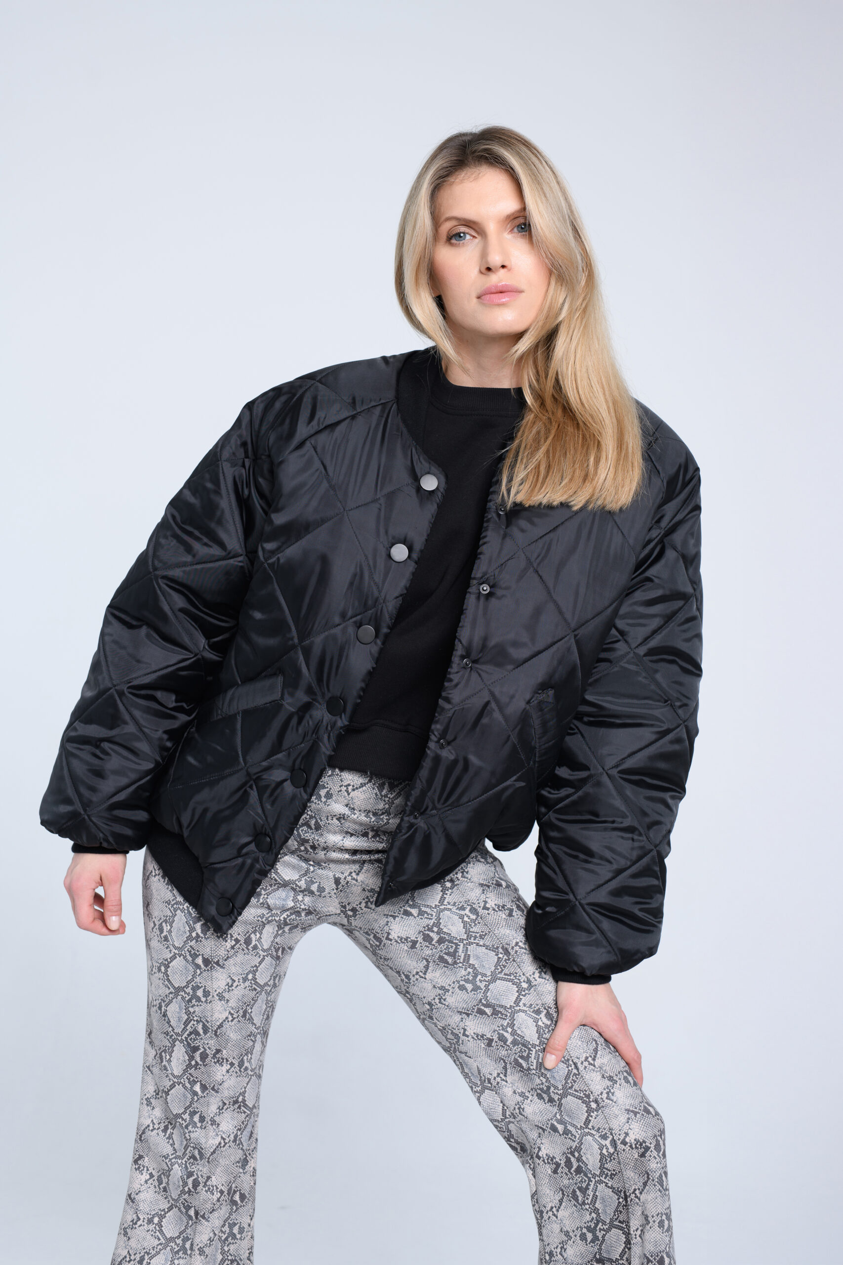 • Klasyczny krój bomberki – lekko oversize’owy, idealny na każdą sylwetkę.