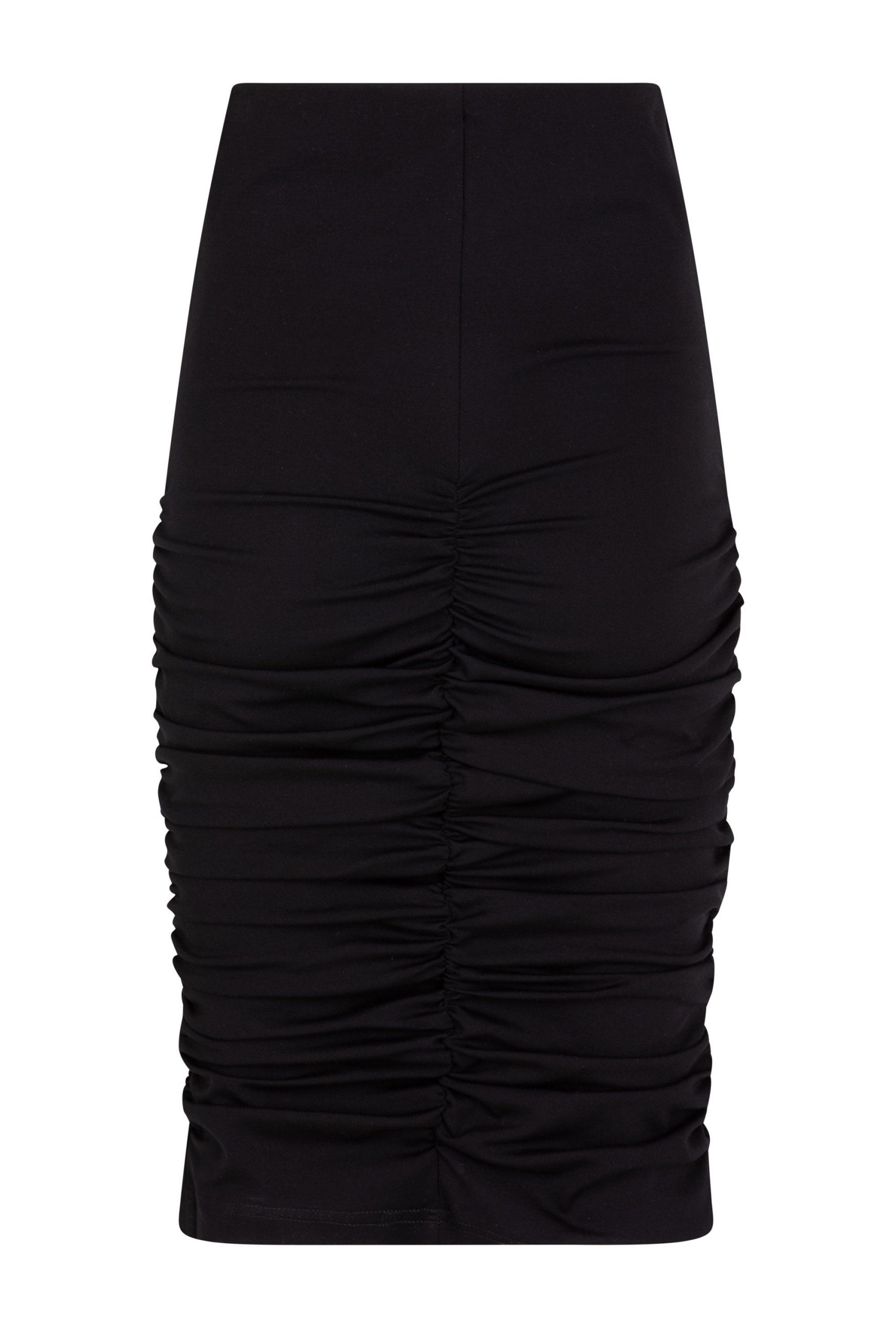 Czarna spódnica tuba. Marszczenia w szwach bocznych i z tyłu spódnicy pięknie podkreślają sylwetkę. Klasyczny model i kolor to must have w szafie każdej Niumiholiczki. Stanowi idealną bazę dla wielu stylizacji. Na sportowo z bluzą czy elegancko i kobieco z marynarką i szpilkami.