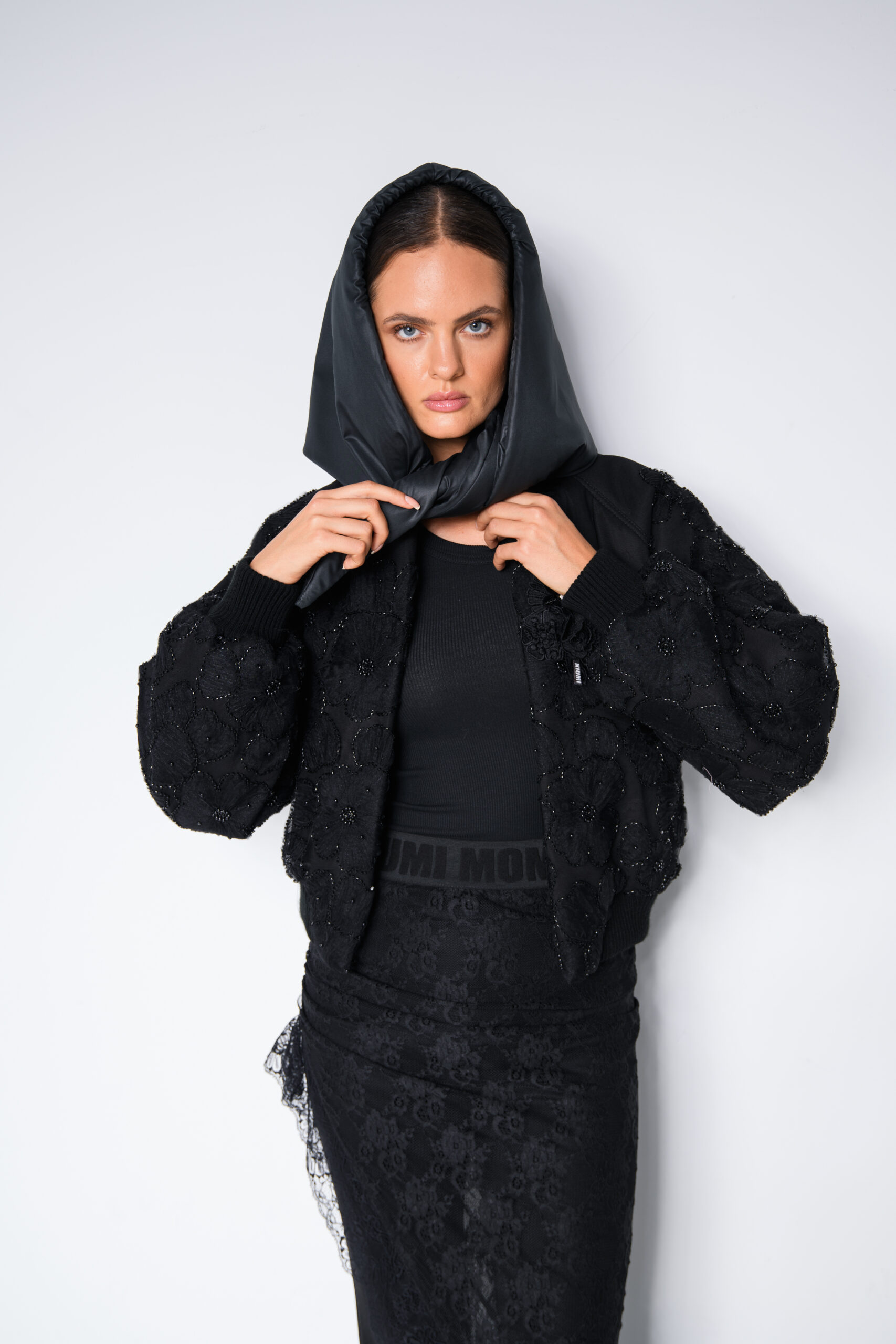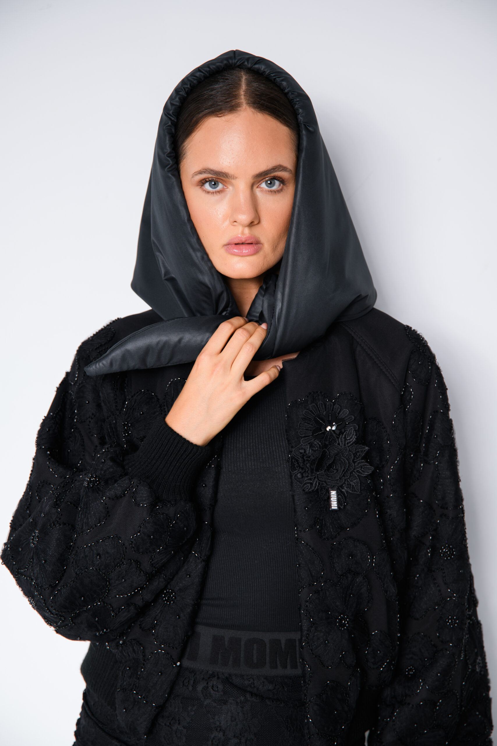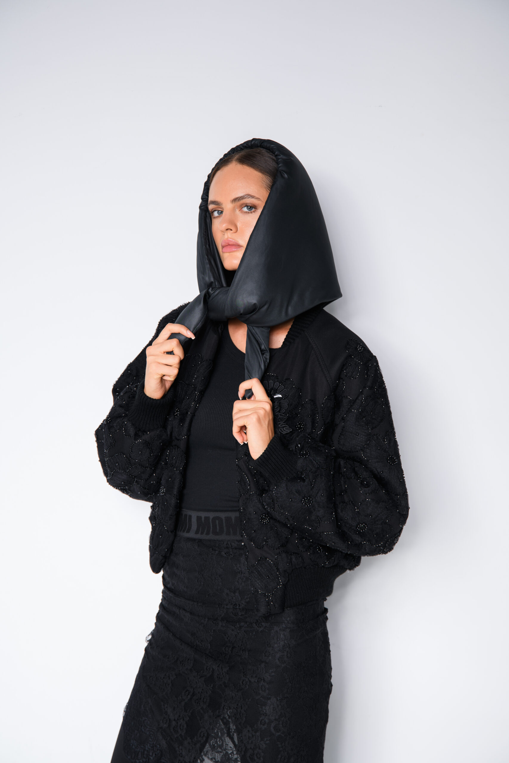 Czarny puchowy kaptur z wiązaniem to must-have jesieni 2025! Miękki, lekki i ciepły, świetnie sprawdzi się w codziennych zestawach, a także w bardziej eleganckich stylizacjach. Regulowane wiązanie pozwala dopasować kaptur dokładnie tak, jak lubisz, a uniwersalny czarny kolor pasuje do wszystkiego.