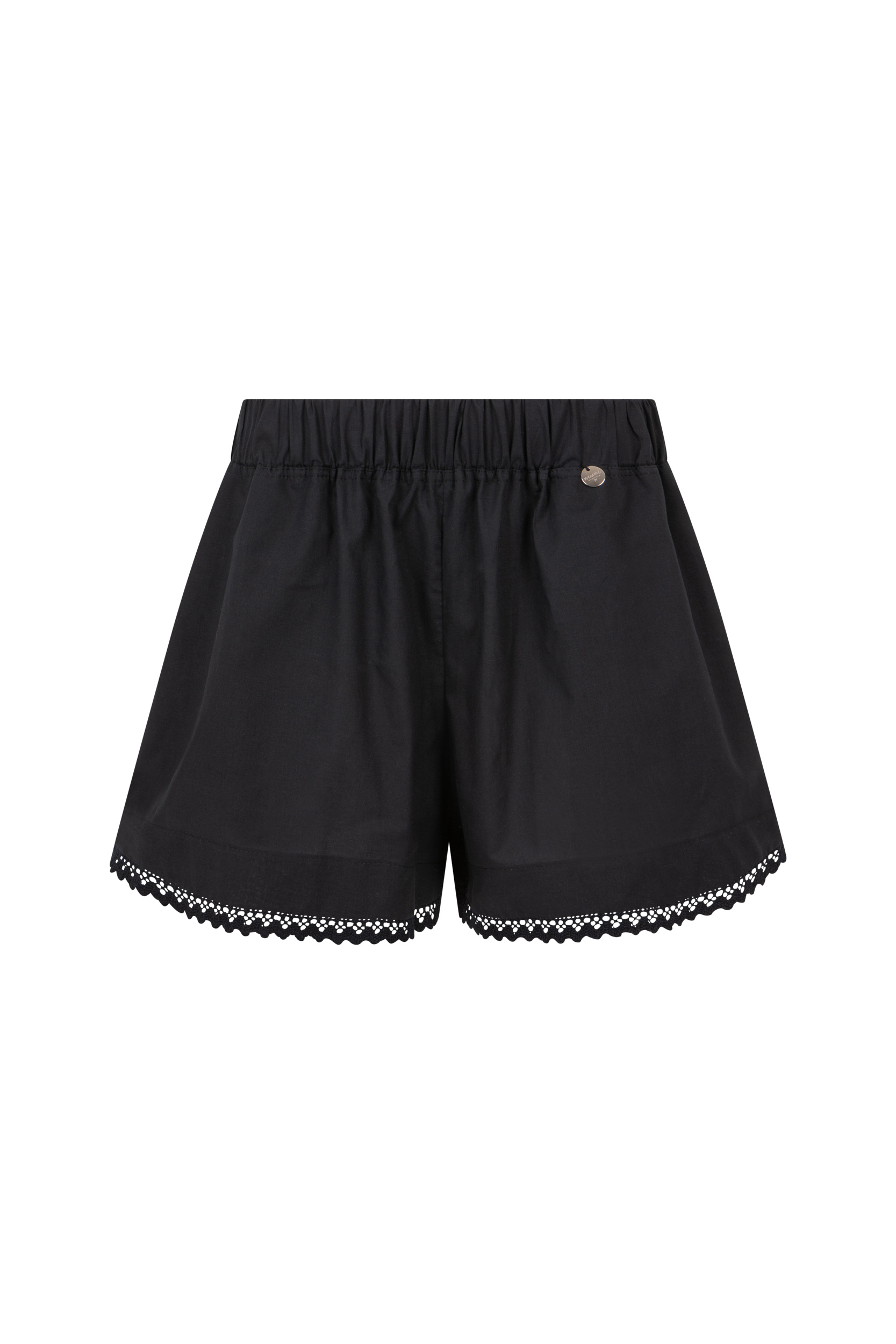 Damskie czarne szorty z koronką wykonane z lekkiej, oddychającej bawełny batystowej to idealna propozycja na lato. Luźny krój oraz elastyczna guma w pasie zapewniają wygodę noszenia, a delikatna koronka na nogawkach dodaje kobiecego i subtelnego wykończenia. W połączeniu z topem z tego samego materiału tworzą modny, letni komplet, który doskonale sprawdzi się na wakacjach, spacerze czy w codziennych stylizacjach.