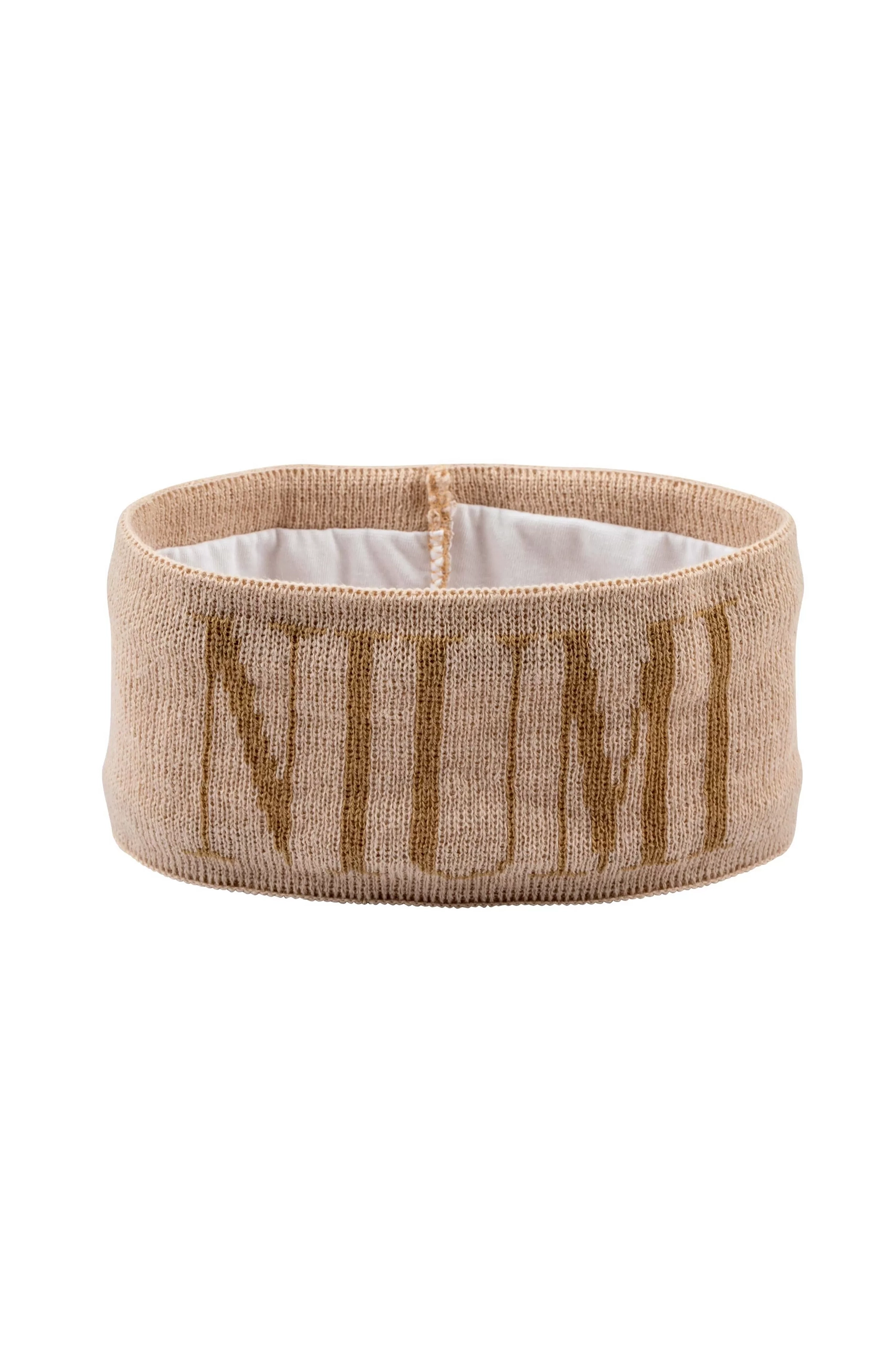 Dzianinowa opaska beżowa. Prosta forma oraz duże logo NIUMI. Opaska będzie idealnym uzupełnieniem miejskich stylizacji lub dodatkiem na stoku podczas zimowych wakacji. Podaruj ją komuś bliskiemu lub zrób sobie mały prezent!