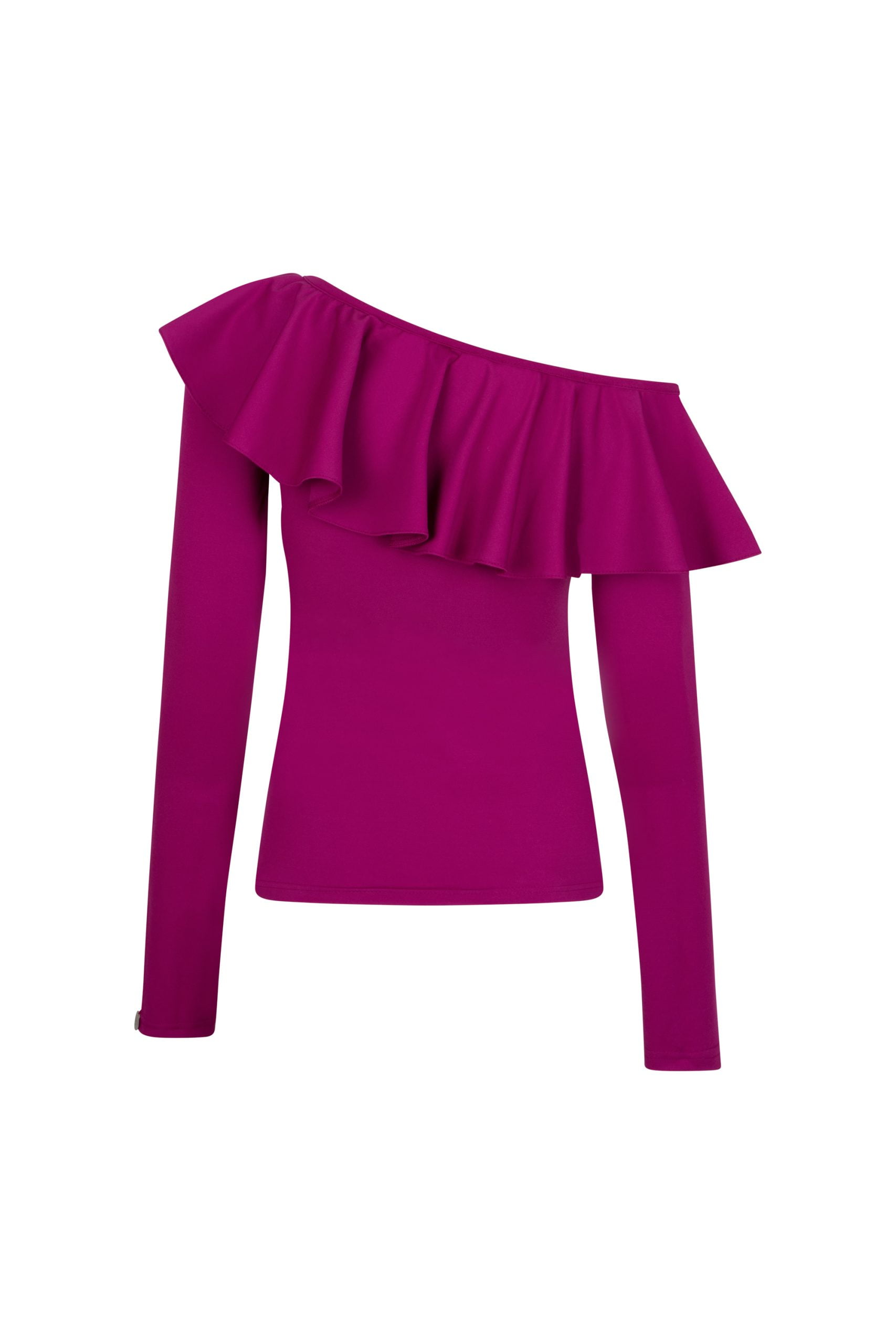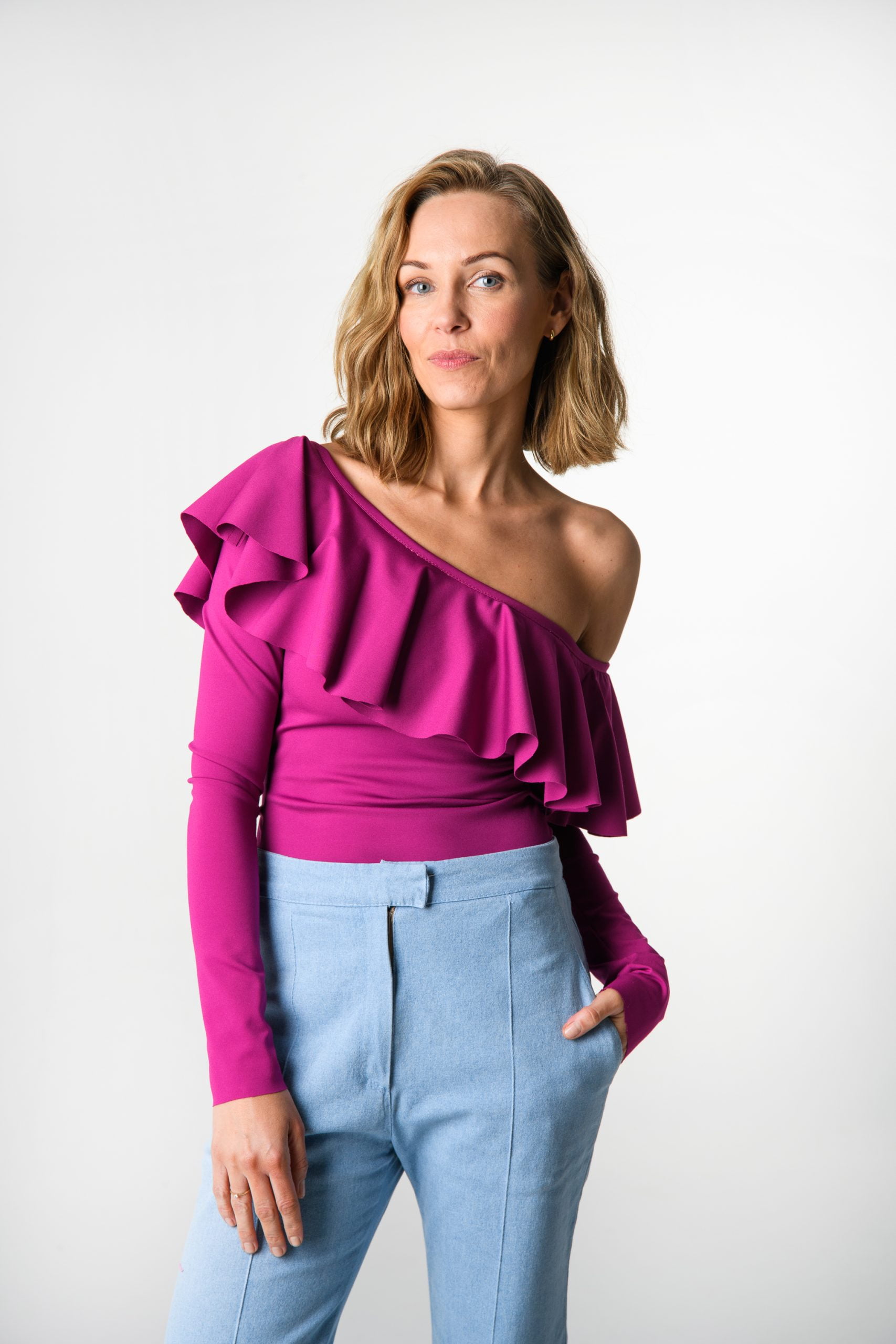 Elegancka asymetryczna bluzka z falbaną w intensywnym kolorze fuksji. Dopasowana forma podkreśla kobiecą sylwetkę, a wykonana z wysokiej jakości wiskozy zapewnia komfort noszenia. Długi rękaw sprawia, że jest idealna na wiosnę, zapewniając ciepło i styl. Bluzka Fliss to doskonały wybór na różnorodne okazje, dodając charakteru i elegancji Twojej garderobie. Emanuj wdziękiem i szykiem nosząc tę bluzkę na wiosenne spotkania i wydarzenia.