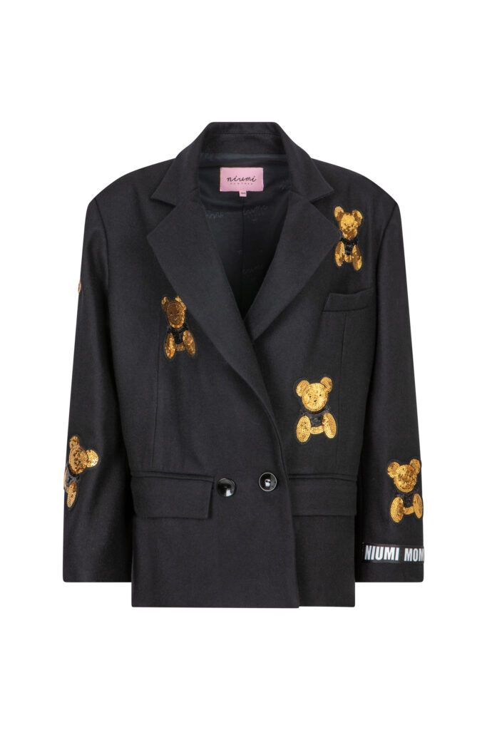 W aktualnej kolekcji znajdziesz również marynarki z naszywkami — limitowane modele z przygotowanymi przez projektantów ozdobami. Te wersje doskonale prezentują się zestawione z klasycznymi czarnymi spodniami, spodniami w kolorze lub… z elementami o wyraźnie świątecznym charakterze, jak cekinowe doły. Jedną z naszych propozycji jest połączenie marynarki z naszywkami z dzwonami czarnymi o bardzo szerokiej nogawce, które wydłużają sylwetkę i nadają całości lekko ekstrawaganckiego, ale nadal eleganckiego charakteru. To look idealny, gdy na Wigilii firmowej chcesz wyglądać zarówno profesjonalnie, jak i nowocześnie.