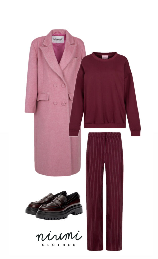Różowy wełniany płaszcz na jesień / zimę Niumi