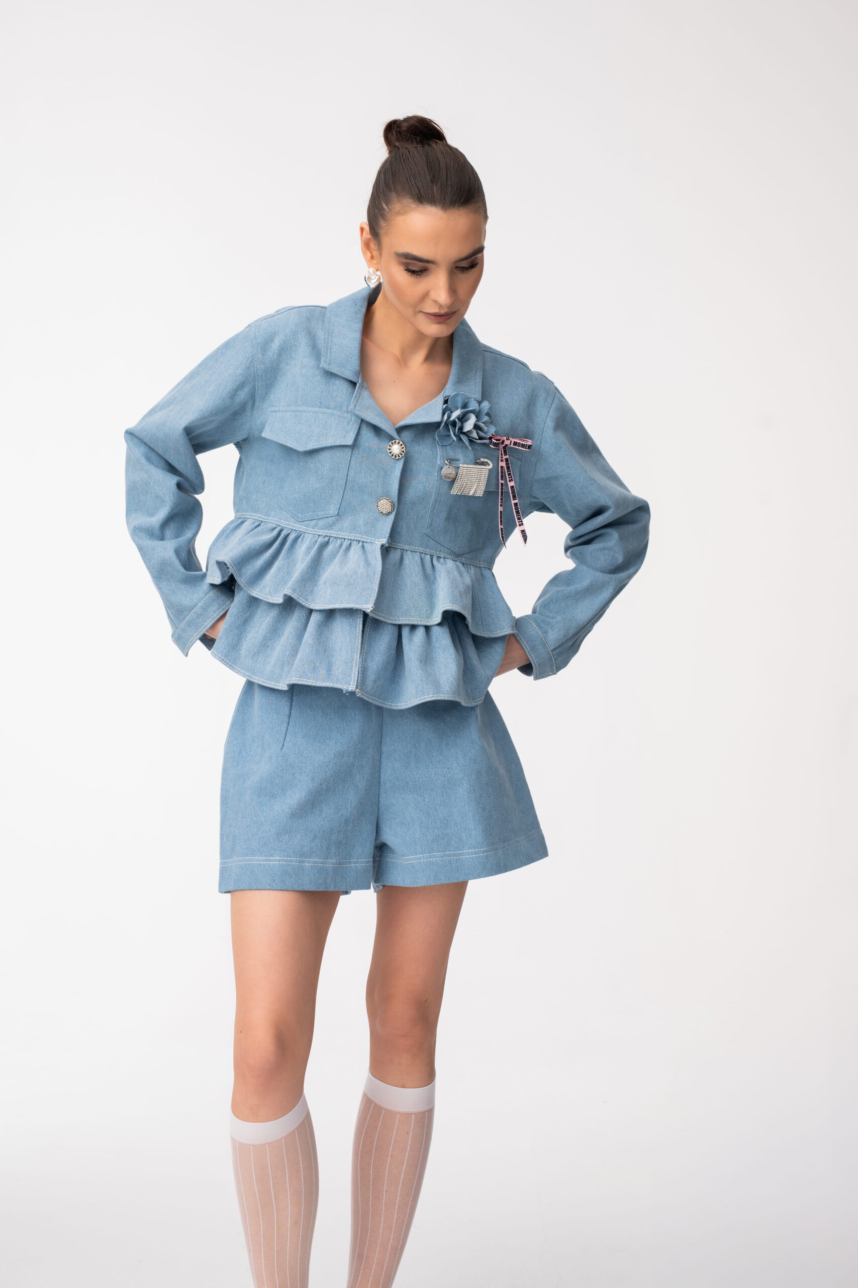 Jeansowe szorty damskie z wysokim stanem