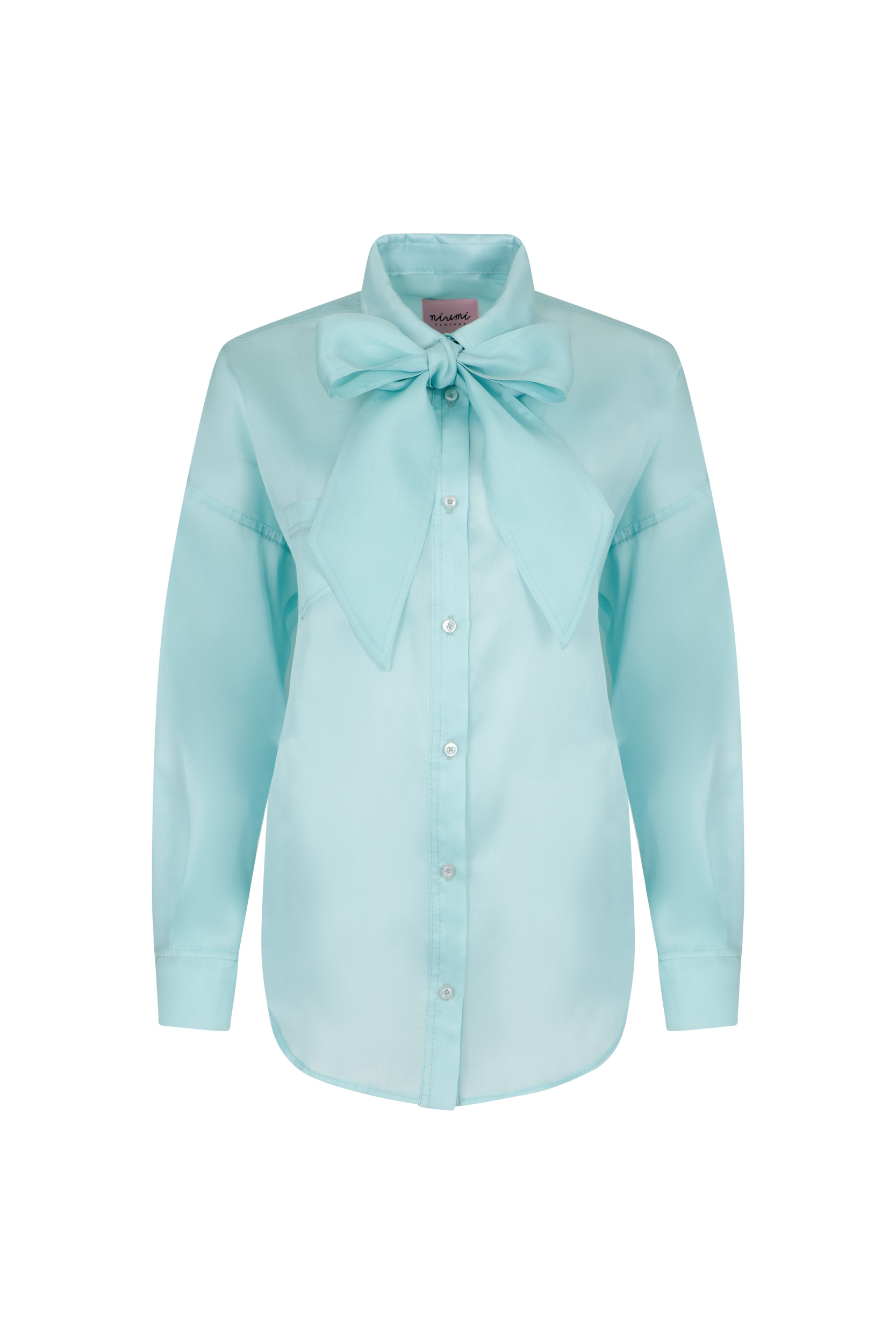 Jedwabna koszula na wiosnę z kokardą. Wykonana z przewiewnego materiału, który pięknie układa się na sylwetce. Idealna do tworzenia lekkich, wiosennych stylizacji, a wiązanie można układać na różne sposoby.