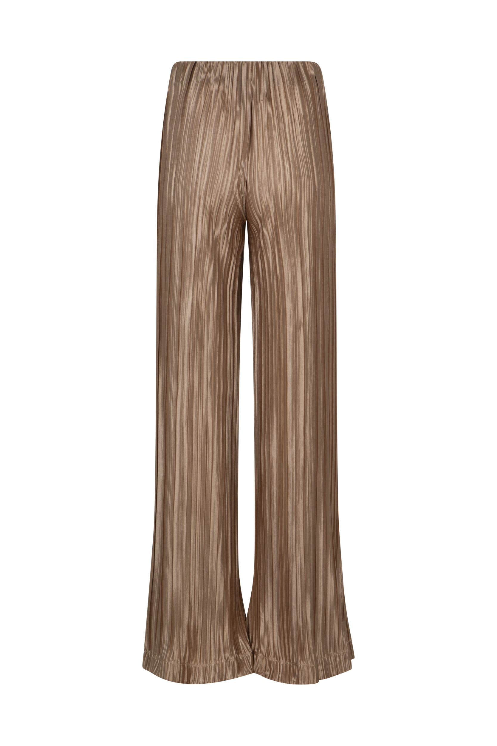 Plisowane spodnie w kolorze karmelowym wykonane z lekkiego, lejącego materiału, pięknie układają się na sylwetce, dodając stylu i swobody ruchów. Dzięki elastycznej gumce w pasie idealnie dopasowują się do figury, zapewniając komfort przez cały dzień. Karmelowy odcień to klasyka, która pasuje do każdej stylizacji – zarówno casualowych z trampkami i t-shirtem, jak i eleganckich z koszulą i szpilkami.