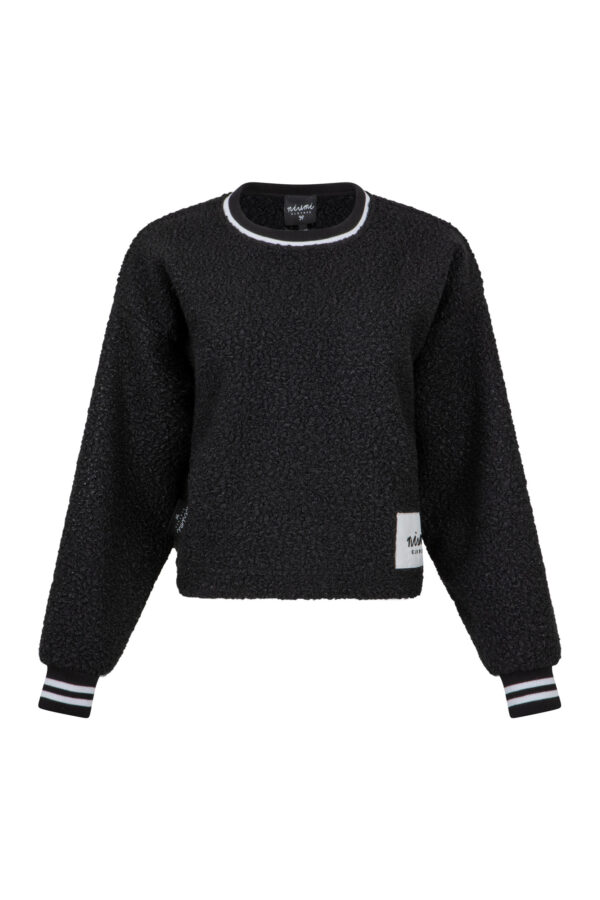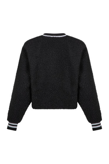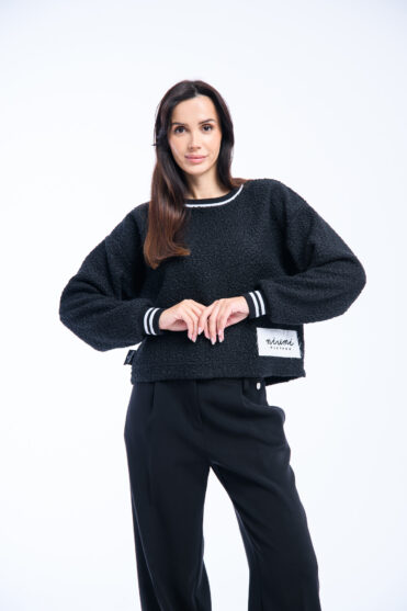 Pluszowa czarna bluza z logo z tkaniny boucle, znanej jako „baranek”. Bluza Bear Black to wyjątkowy model, który łączy przytulną fakturę z nowoczesnym wykończeniem, idealny dla miłośników niebanalnych stylizacji.