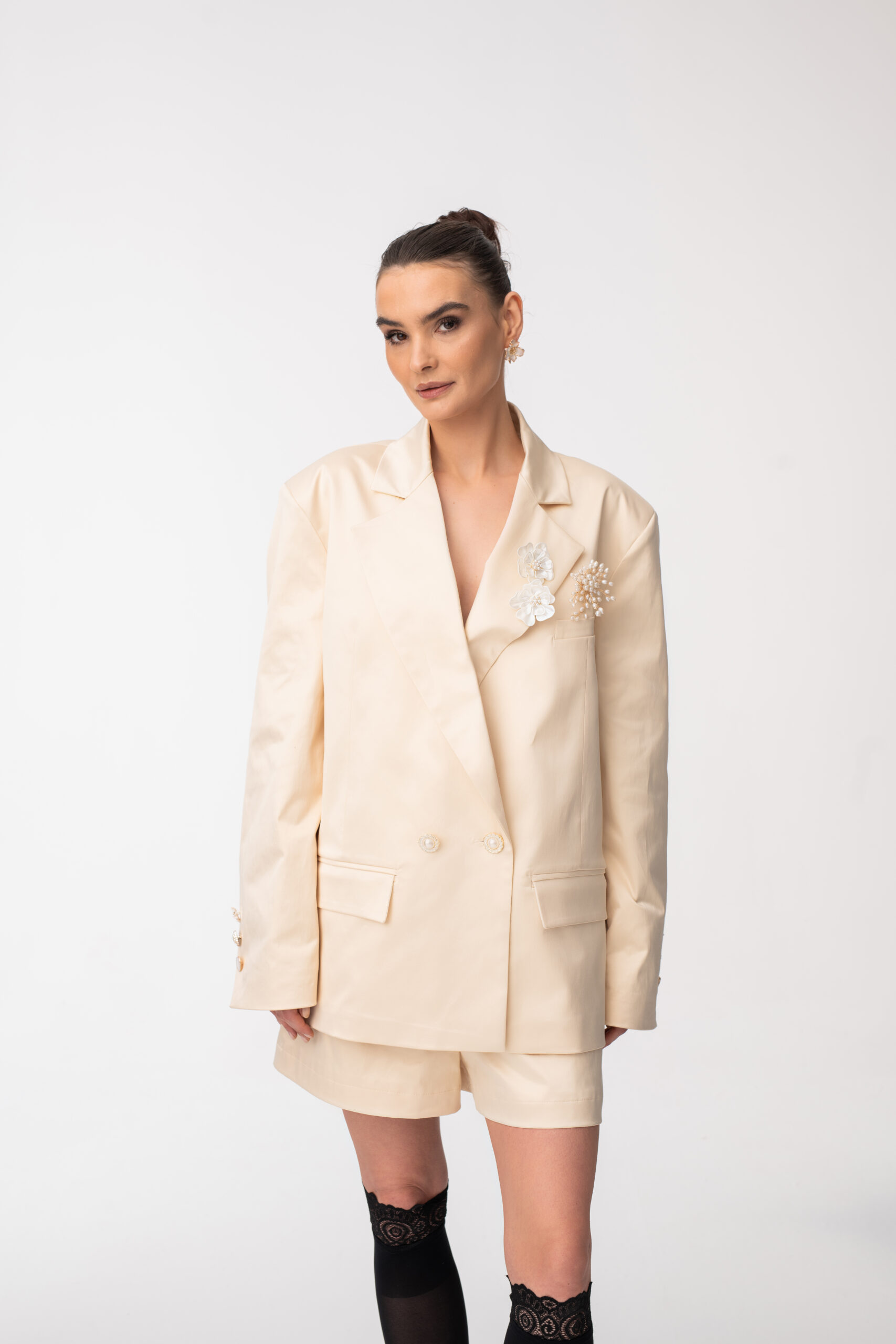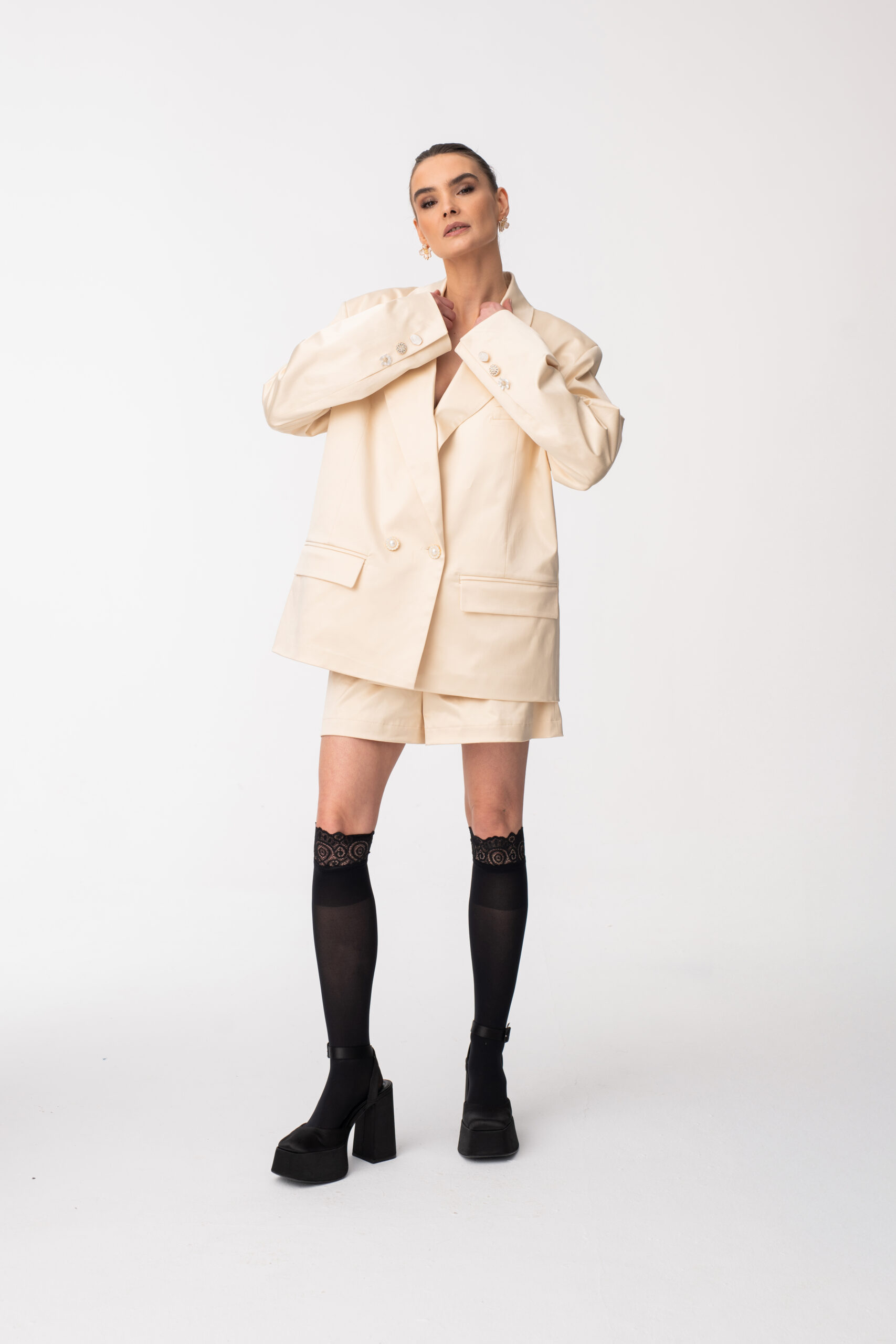 Satynowe szorty damskie ecru z delikatnym połyskiem i luźnym krojem. W duecie z marynarką Satie tworzą idealny komplet na wiosnę. Możesz zestawiać je z lekkimi topami, koszulkami czy bluzkami na co dzień, a także z eleganckimi żakietami czy swetrami na bardziej formalne okazje.