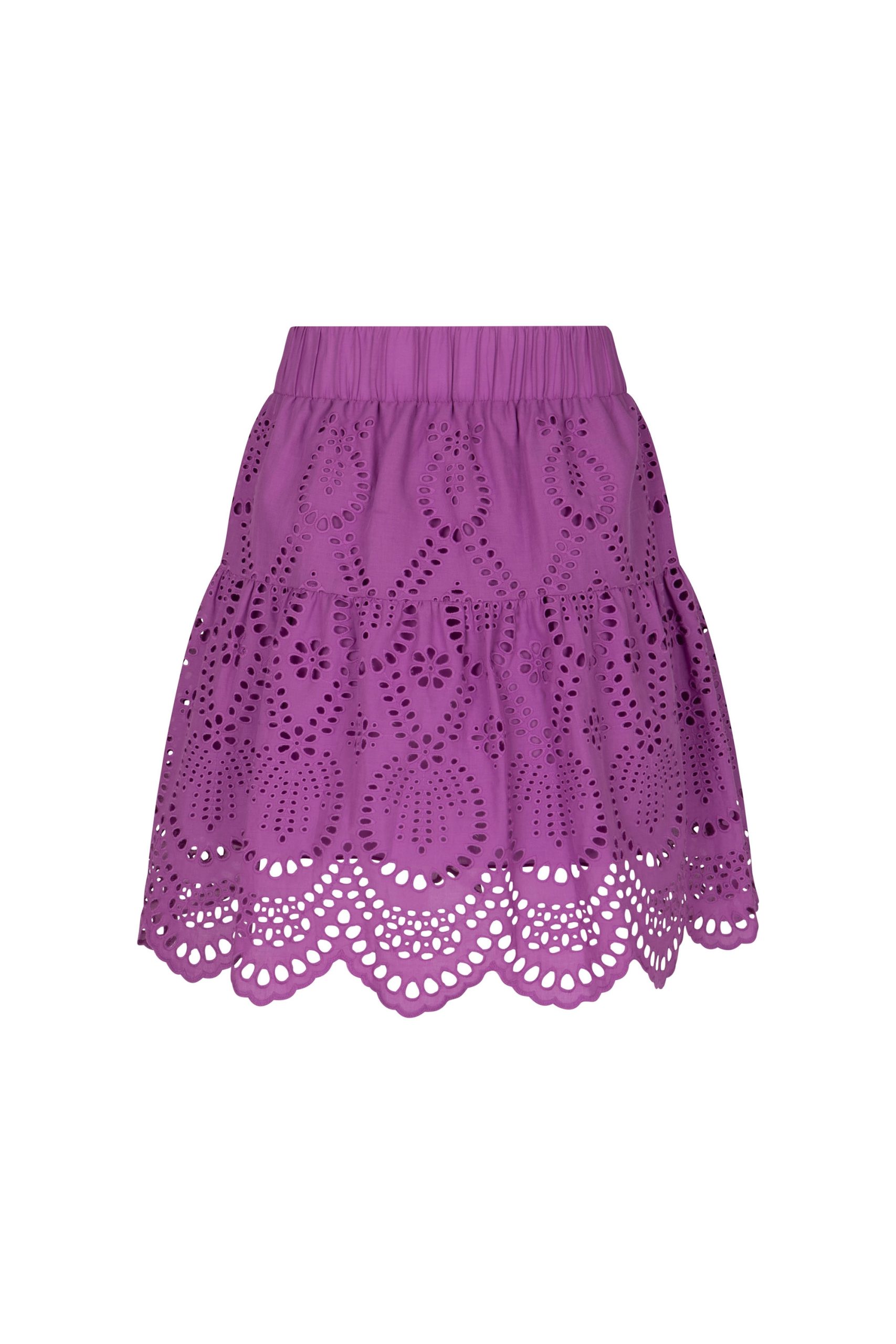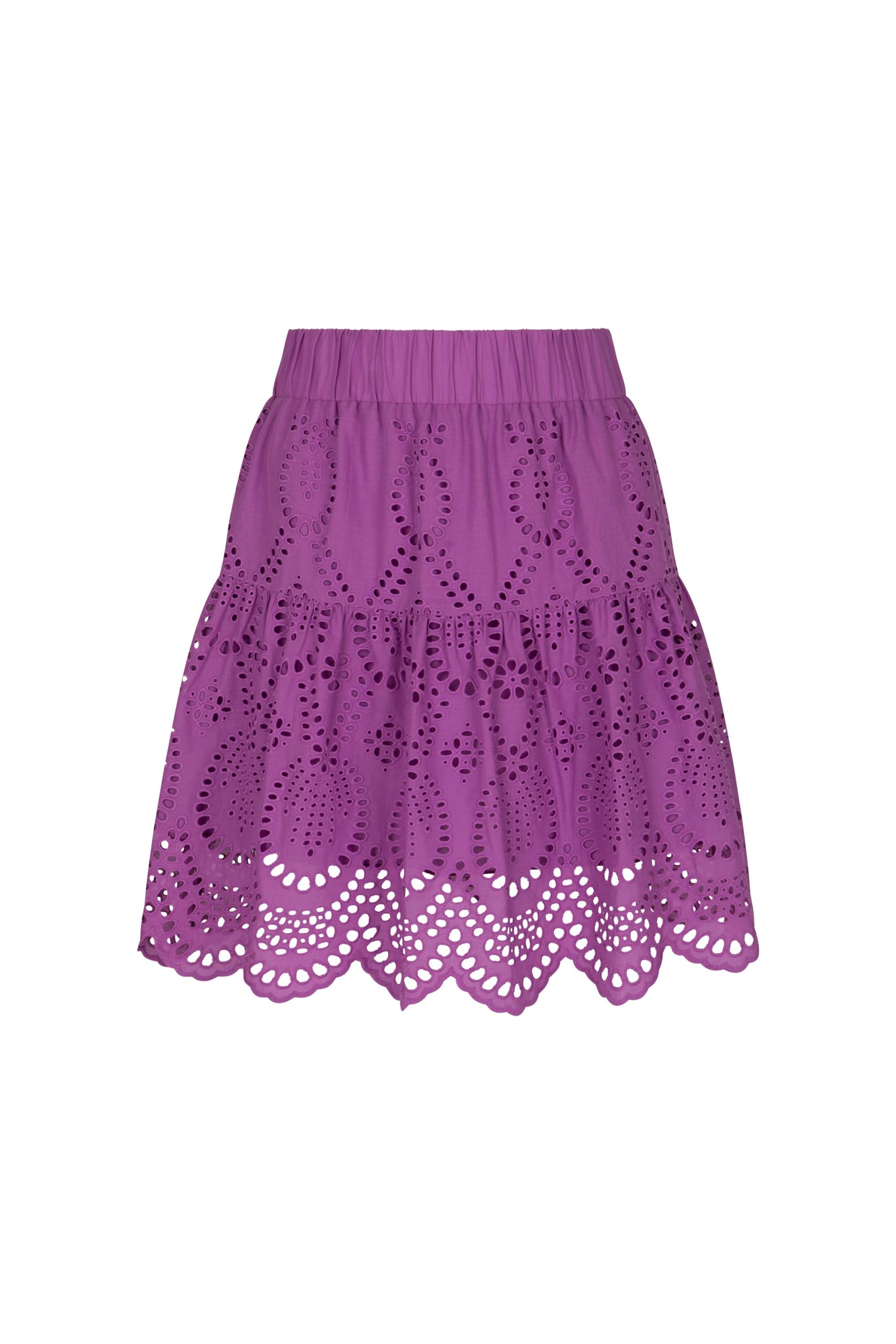 Bawełniana, fioletowa spódniczka z koronkowym wykończeniem. Wszyta gumka, która idealnie dopasowuję się w talii. Pod spodem podszewka w kolorze całości. Razem z bluzką Grape tworzą koronkowy komplet, który idealnie sprawdzi się podczas letnich gorących dni. Fioletowy top świetnie eksponuje ramiona i razem z krótką spódniczką tworzy świetną codzienną stylizację miejską lub może być idealnym outfitem na wakacyjny wyjazd. Świetnie się sprawdzi do spacerowania w słońcu czy na plażę.