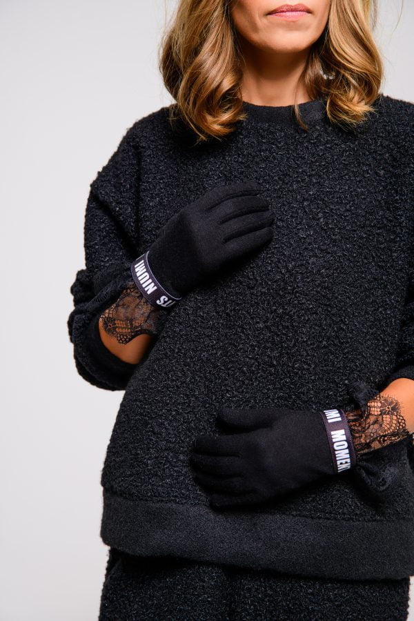 Odkryj doskonałą równowagę między stylem a funkcjonalnością dzięki naszym wełnianym czarnym rękawiczkom z delikatną koronką u góry, ozdobionym subtelnie umieszczonym logo niumi. Nasze rękawiczki nie tylko spełniają praktyczne potrzeby ochrony przed chłodem, ale także stanowią wyrafinowany dodatek do Twojej codziennej garderoby.