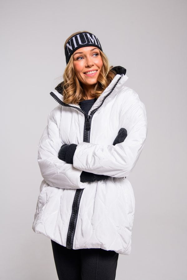 Zimowa opaska dzianinowa w klasycznych czarno-białych kolorach. Prosta forma, duże logo NIUMI. Będzie idealnym uzupełnieniem miejskich stylizacji lub dodatkiem na stoku podczas zimowych wakacji. Podaruj są komuś bliskiemu lub zrób sobie mały prezent!
